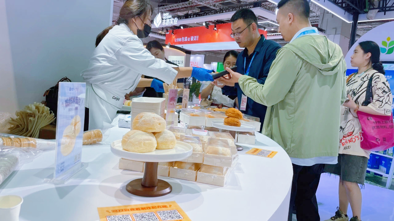 晶花酸奶粉、艿大师厚椰乳等产品也能适配烘焙渠道需求,现场试吃观众络绎不绝。