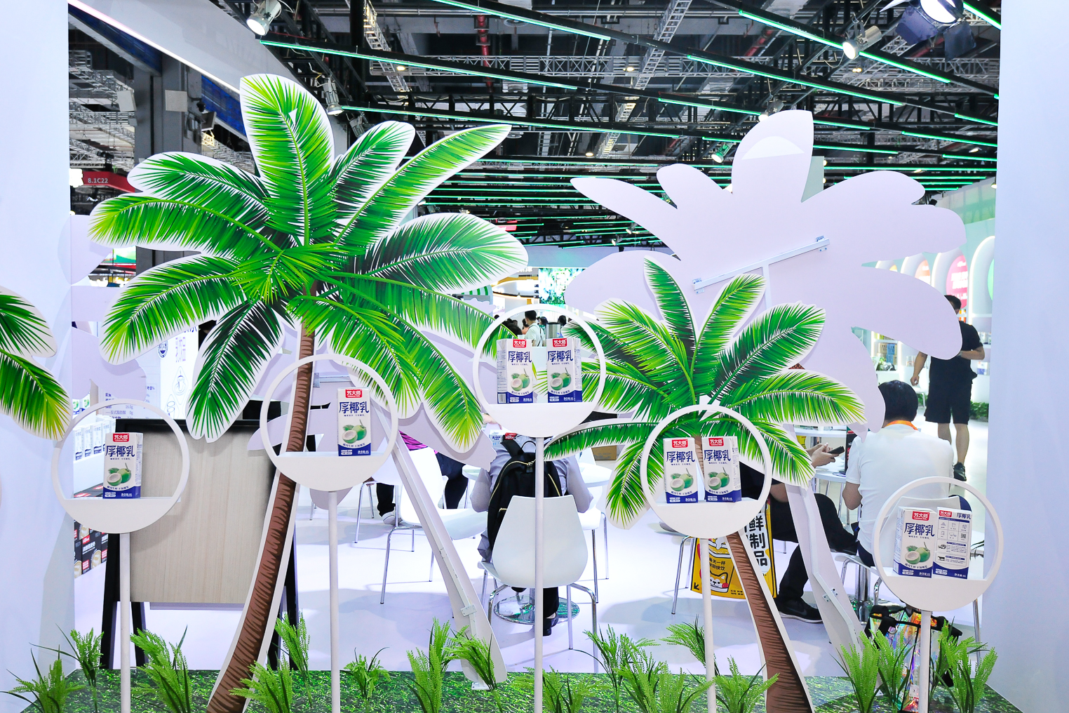 本次展会不仅展示新产品矩阵和丰富应用,展台陈列、产品物料设计等方面也可圈可点。展台占地300平米,整体以清新自然的绿色+白色搭配,体现品牌“健康、绿色、可持续”的发展理念。