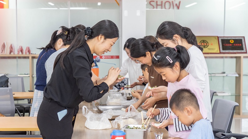 "亲子红色阅读"环节,孩子们轮流朗读红色经典篇章,从书中汲取习总书记在七年知青下乡的艰苦岁月里直面困境、扎根群众的赤诚和榜样力量。随后的包馄饨(饺子)环节,家长和孩子一起围在桌前,分工合作,默契十足。大家一边包着,一边交流着生活中的趣事,现场洋溢着浓浓的亲情和温馨的氛围。当一盘盘热气腾腾的馄饨和饺子端上桌时,孩子们迫不及待地品尝着自己的劳动成果,脸上洋溢着满足和自豪的笑容。